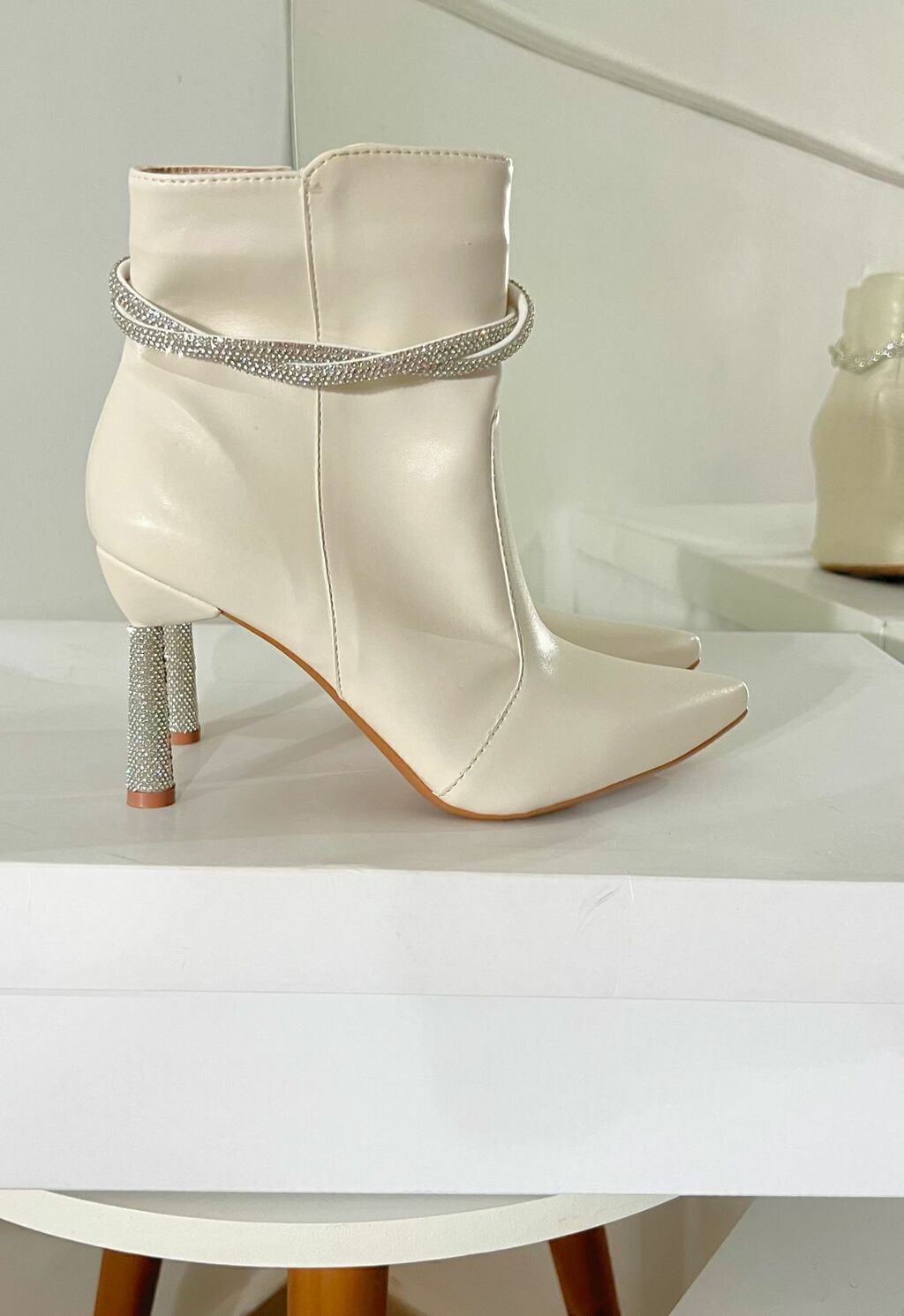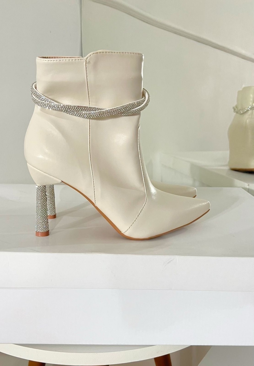 Destaques da Bota Dorothy Off: - Cor off-white neutra e sofisticada, ideal para diversas combinações. - Aplicações em strass que garantem brilho e elegância discretos. - Materiais premium que proporcionam durabilidade e conforto. - Silhueta moderna que valoriza o estilo feminino com delicadeza.