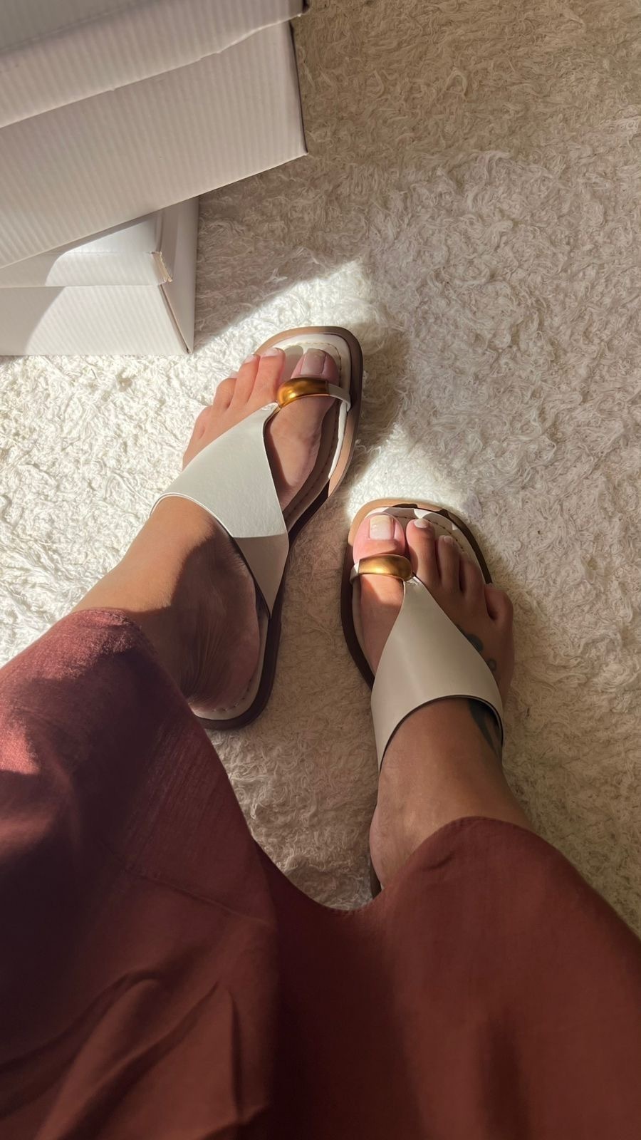 Rasteira Isadora Off-white – Elegância e Conforto para o Seu Dia a Dia